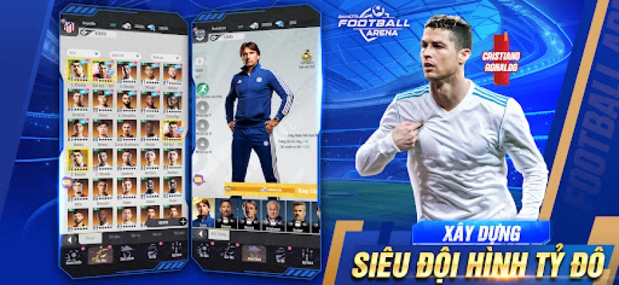 Trong FOOTBALL ARENA - VUA BÓNG ĐÁ!, bạn sẽ nhập vai HLV tài ba, thỏa sức sưu tầm các siêu sao bóng đá hàng đầu. Sắp xếp chiến thuật độc đáo, dẫn dắt đội bóng của mình đến vinh quang và nhàn tay chinh phục mọi chiếc cúp danh giá. Đây là game quản lý bóng đá đỉnh cao dành cho bạn.
