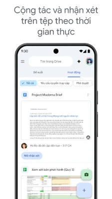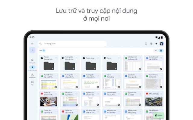 Việc tìm kiếm và sắp xếp các tệp chưa bao giờ dễ dàng đến thế. Drive cho phép bạn nhanh chóng định vị nội dung dựa trên tên, từ khóa hay thậm chí là lọc theo loại tệp hoặc ngày sửa đổi. Chia sẻ thông tin với đồng nghiệp hoặc bạn bè chỉ trong vài cú chạm, đồng thời kiểm soát chặt chẽ quyền truy cập để bảo đảm an toàn. Luôn cập nhật mọi hoạt động quan trọng trên các tệp của bạn thông qua hệ thống thông báo tức thời. Ngay cả khi không có kết nối internet, các tệp của bạn vẫn có thể được xem và chỉnh sửa, giúp công việc không bị gián đoạn. Đặc biệt, trên máy tính bảng Android, giao diện được tối ưu hóa với chế độ xem song song và tính năng kéo thả trực quan, nâng cao đáng kể trải nghiệm làm việc của bạn.