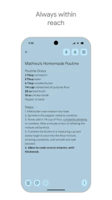 Biến mọi ý tưởng thoáng qua thành những ghi chú hữu ích với Google Keep. Dù là một ý nghĩ chợt đến, một danh sách việc cần làm hay một bức ảnh quan trọng, bạn đều có thể dễ dàng lưu giữ. Đơn giản chỉ cần nhập văn bản, tạo danh sách kiểm tra hoặc chụp ảnh. Bạn đang bận rộn? Hãy ghi lại một bản ghi nhớ bằng giọng nói và Google Keep sẽ tự động chuyển đổi thành văn bản, giúp bạn dễ dàng tìm kiếm sau này. Với các tiện ích trực quan trên điện thoại và máy tính bảng, cùng các ô và chức năng chuyên biệt trên thiết bị Wear OS, việc ghi lại những gì bạn cần chưa bao giờ nhanh chóng và thuận tiện đến thế. Sắp xếp mọi thứ ngăn nắp bằng cách gán màu sắc và nhãn tùy chỉnh, biến kho ý tưởng của bạn thành một hệ thống dễ quản lý.