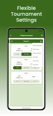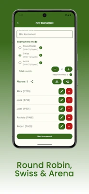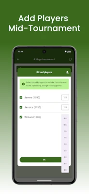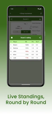 Chess Tournament Manager đặt tính chính xác và linh hoạt lên hàng đầu. Trong các giải đấu theo Hệ thống Thụy Sĩ, xếp hạng Elo của người chơi được tự động cập nhật sau mỗi vòng đấu, mang đến cái nhìn liên tục và chính xác về thứ hạng hiện tại. Hơn nữa, ứng dụng cho phép bạn dễ dàng thêm người chơi mới vào một giải Thụy Sĩ đang diễn ra mà không làm gián đoạn cấu trúc giải, một tính năng hoàn hảo cho các sự kiện năng động. Với bảng xếp hạng được làm mới theo thời gian thực ở cả hai chế độ, mọi người tham gia và khán giả đều có thể theo dõi sát sao diễn biến và vị trí của từng kỳ thủ.