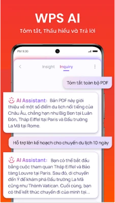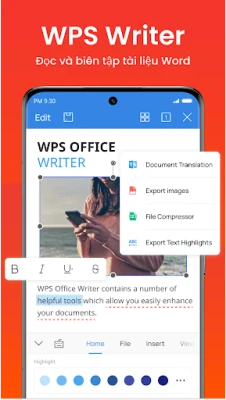 WPS Office mang đến một bộ ứng dụng văn phòng mạnh mẽ ngay trên thiết bị Android của bạn, kết hợp sự tiện lợi và hiệu quả tối ưu cho mọi nhu cầu công việc. Với sự tích hợp đột phá của WPS AI, trải nghiệm làm việc của bạn sẽ được nâng tầm hoàn toàn. WPS AI tự hào cung cấp khả năng tạo nội dung chất lượng cao tức thì, từ những bản tóm tắt cuộc họp mạch lạc đến các kế hoạch sự kiện chi tiết hay sơ yếu lý lịch chuyên nghiệp, tất cả chỉ cần một gợi ý đơn giản. Hơn thế nữa, WPS AI còn là trợ lý viết lách đắc lực, giúp bạn chỉnh sửa, cải thiện văn phong và làm sáng tỏ mọi tài liệu, biến quy trình viết thành một trải nghiệm mượt mà và hiệu quả.